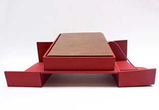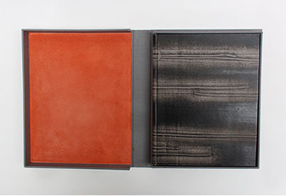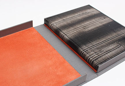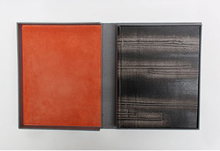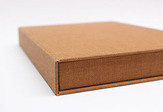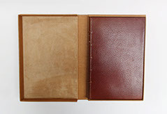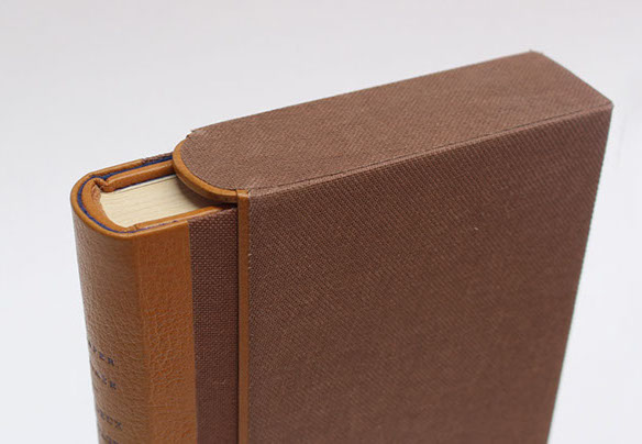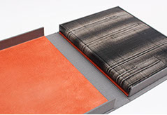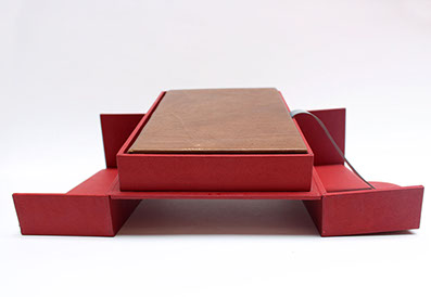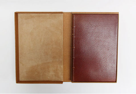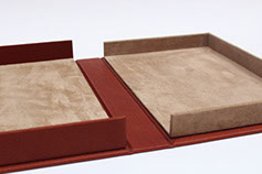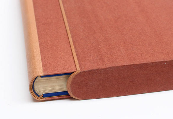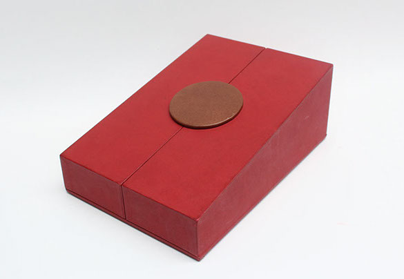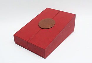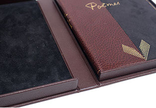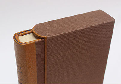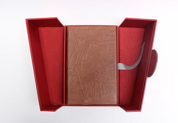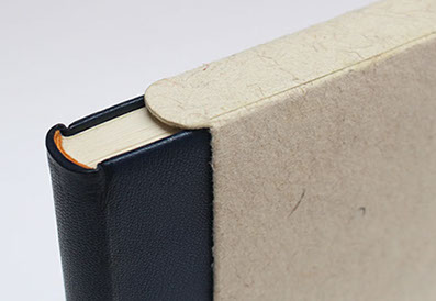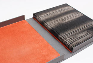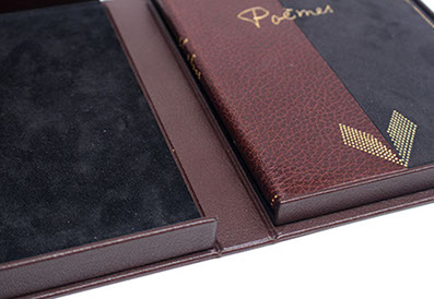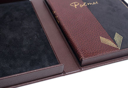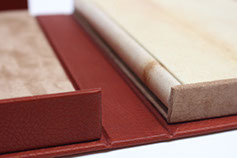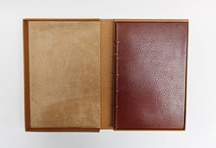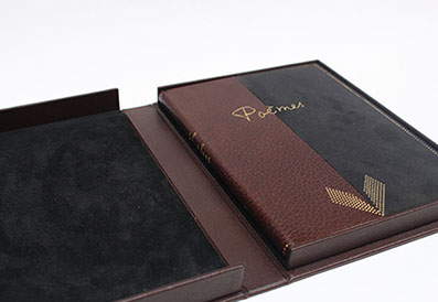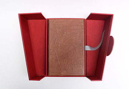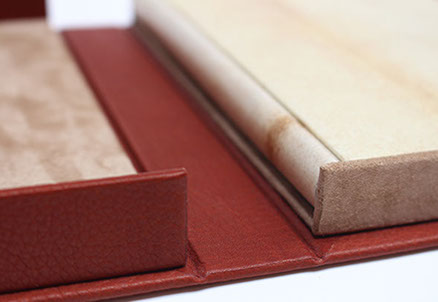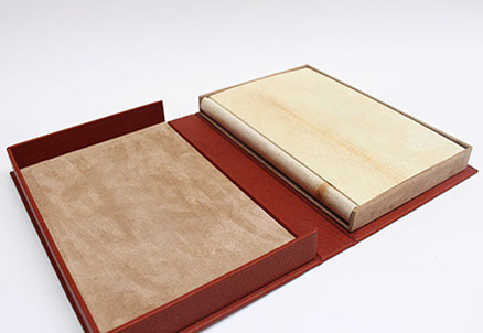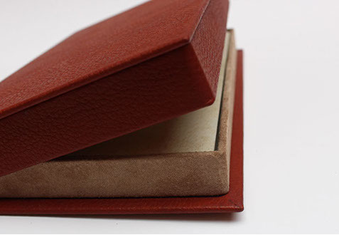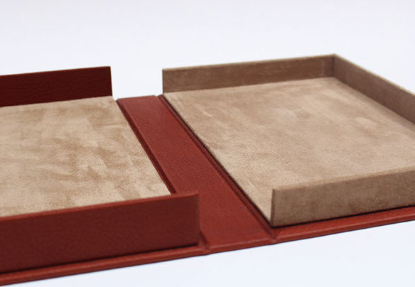 Etui en carton avec bordure en cuir.