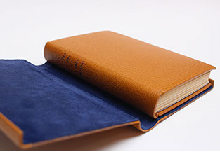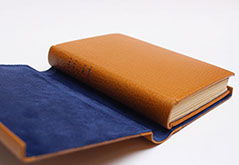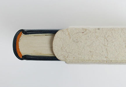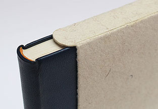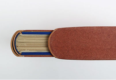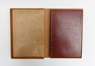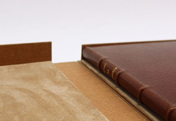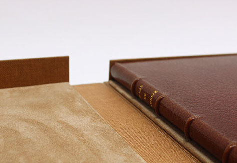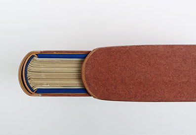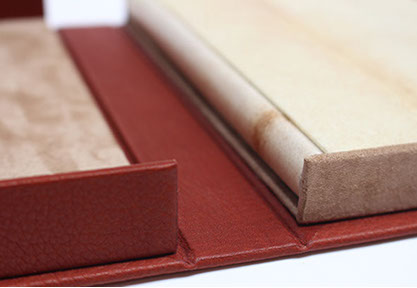 Dos et rabats en cuir. Plats en papier.